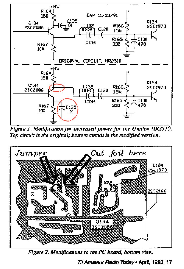 Modifications for increased power for the Uniden HR2510.