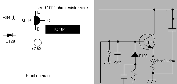 To modify this, remove Q114 and bend the Emmitter leg up from the circuit board and re install.
